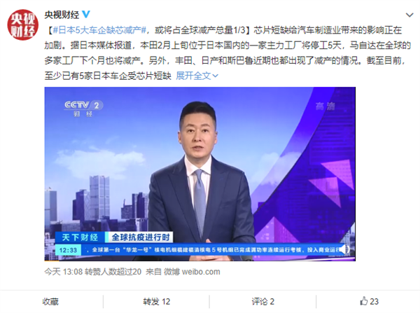 日前,據(jù)央視報(bào)道,本田2月上旬位于日本國內(nèi)的一家主力工廠將停工5天,馬自達(dá)在全球的多家工廠下個(gè)月也將減產(chǎn);豐田、日產(chǎn)和斯巴魯近期也都出現(xiàn)了減產(chǎn)的情況。
