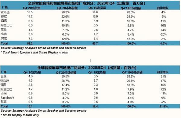2020年Q4需求強勁,全球智能音箱銷量突破1.5億部