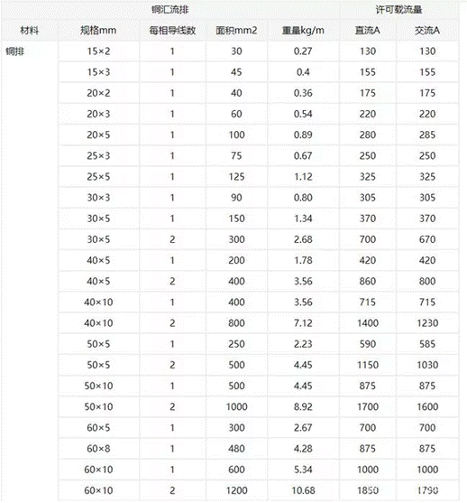 附銅排載流能力表: