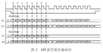 CC2500是一種單片2.4 GHz收發(fā)器,通過SPI接口與MCU建立聯(lián)系,MCU在開始要完成對(duì)CC2500寄存器的配置,其讀寫時(shí)序如圖3所示。首先設(shè)置IOCFG2,IOCFG0.TX發(fā)送字節(jié)個(gè)數(shù),包長度,發(fā)射功率等寄存器,完成對(duì)CC2500的初始化。