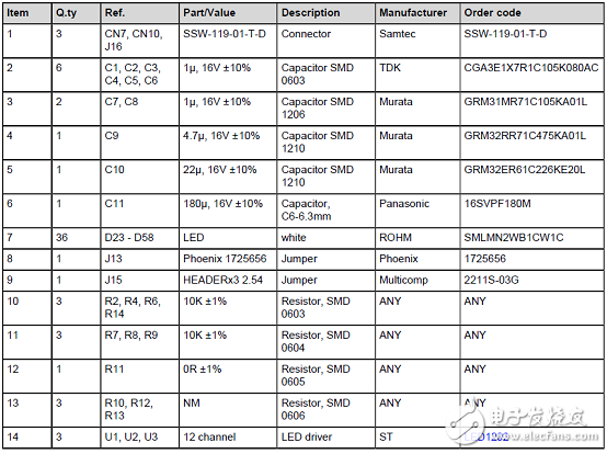 評(píng)估板STEVAL-LLL007M1材料清單: