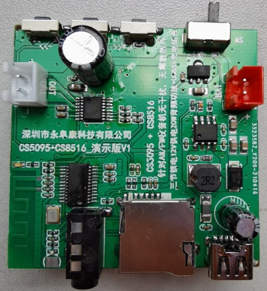 7. CS8516音頻功放+CS5095 USB5V三節(jié)鋰電充電管理一體演示板實(shí)物圖