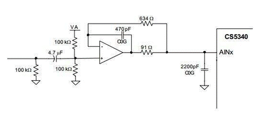 CS5333 和 CS5340 都實現(xiàn)了單端輸入架構(gòu)。由于轉(zhuǎn)換器內(nèi)輸入采樣拓撲的差異,這兩個器件的輸入濾波器要求不同。