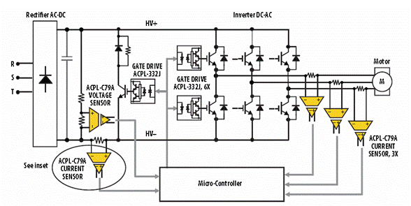 電機(jī)驅(qū)動(dòng)中的功率轉(zhuǎn)換器框圖分析