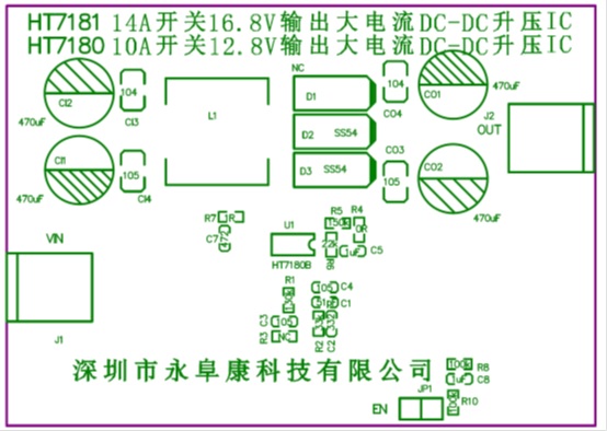 深圳市永阜康科技有限公司針對升壓值13V以下的DC-DC升壓應(yīng)用需求,推廣一款集成10A開關(guān)管的12.8V輸出、大電流非同步DC-DC升壓IC:HT7180。HT7180采用獨(dú)到的電路研發(fā)技術(shù)以及先進(jìn)的半導(dǎo)體工藝制程,基于SOP8封裝,工作效率高達(dá)90%以上,無需外加散熱器,3.7V輸入升壓到12V,可穩(wěn)定輸出2A電流。