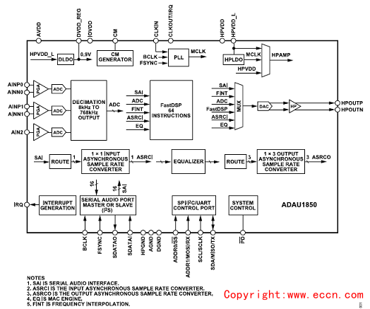 圖1.ADAU1850功能框圖