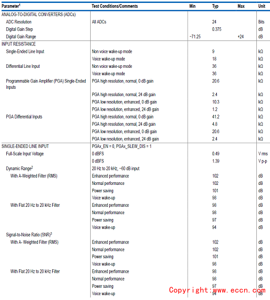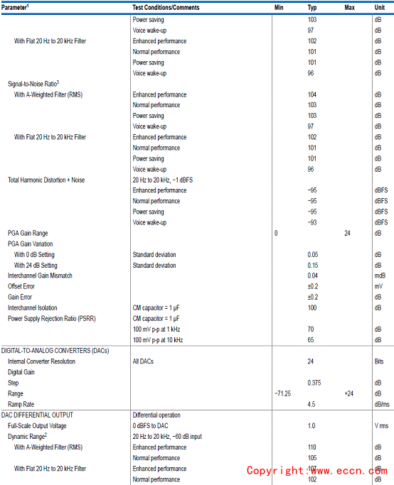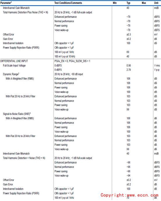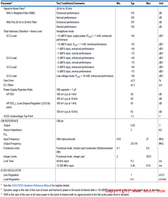 ADAU1850模擬性能指標(biāo):