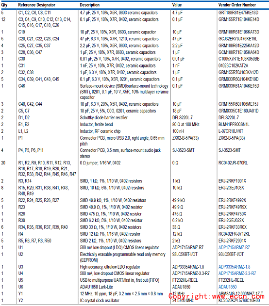 評估板EVALADAU1850EBZ材料清單: