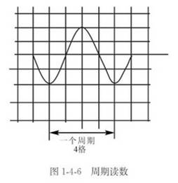 (2) 時間的測量和頻率的測量在此僅介紹一般的周期測量方法。1) 測量前先將示波器的水平微調(diào)旋鈕順時針旋到底,使掃描速度被校準(zhǔn)到與面板上TIME/DIV指示的一致。2) 接入被測信號,將圖形移至熒光屏中心,如圖1-4-6所示。