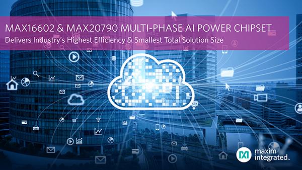 Maxim Integrated Products, Inc (NASDAQ: MXIM)宣布推出MAX16602用于AI處理器核供電的雙輸出穩(wěn)壓電源和MAX20790智能電源級IC,幫助高性能、大功率人工智能(AI)系統(tǒng)開發(fā)人員實現(xiàn)最高效率(降低能耗成本、減少發(fā)熱)和最小方案尺寸的設(shè)計目標。該AI多相電源芯片組充分利用Maxim Integrated的耦合電感專利技術(shù)對電流紋波的抑制,將效率比競爭方案提高1%;在1.8V輸出電壓、200A負載條件下,效率高于95%。此外,效率的提升減少了16%的能源浪費。與競爭方案相比,芯片組輸出電容的尺寸減小了40%,有效降低總體方案尺寸和電容數(shù)量。該芯片組提供可裁剪方案供用戶定制,以滿足不同輸出電流、不同規(guī)格尺寸的要求。此外,芯片組適用于AI邊緣計算以及數(shù)據(jù)中心云計算等系統(tǒng)的供電設(shè)計。