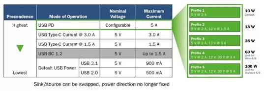 這些特性將為USB創(chuàng)建新的應(yīng)用,特別是在供電方面。繼續(xù)驅(qū)動(dòng)超低功耗處理意味著可以用更少的功率完成更多的工作,并且由于USB連接的總功率現(xiàn)可達(dá)100 W (圖1),這開啟了各種各樣的可能性。但要實(shí)現(xiàn)這一潛力,需要一個(gè)能夠?qū)崿F(xiàn)預(yù)算的USB控制器。