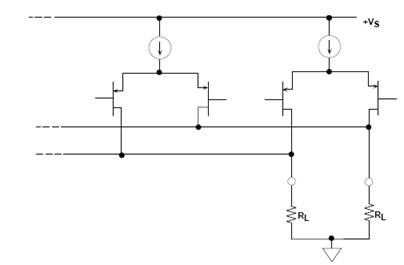TxDAC系列中的基本電流開關(guān)單元由圖6所示的差分PMOS晶體管對(duì)組成。這些差分對(duì)通過低電平邏輯驅(qū)動(dòng),以便最大程度地降低開關(guān)瞬變和時(shí)間偏斜。DAC輸出為對(duì)稱的差分電流,有助于減少偶數(shù)階失真產(chǎn)物(特別是驅(qū)動(dòng)變壓器或運(yùn)放差分電流電壓轉(zhuǎn)換器等差分輸出時(shí))。