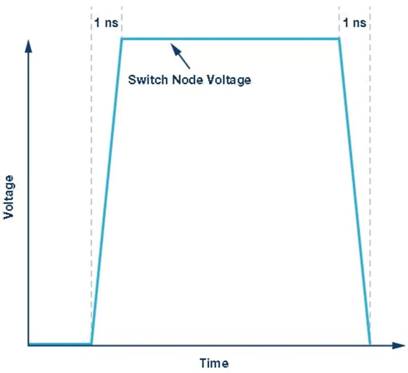 對于現(xiàn)代開關(guān)模式穩(wěn)壓器,它們只有幾納秒長。采用新開關(guān)技術(shù)(例如SiC或GaN)之后,這些開關(guān)轉(zhuǎn)換的時間特別短。圖1所示為大約 1納秒長的開關(guān)轉(zhuǎn)換時間。基礎(chǔ)頻率不能與降壓型穩(wěn)壓器的開關(guān)頻率混淆。但是,有一些方法可以克服干擾問題。如圖1所示,應該盡可能快地開關(guān)邊緣,以便盡可能減少開關(guān)損失。
