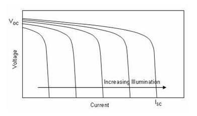 太陽能板輸出是一個電流有限的電壓源。其伏安特性如下圖所示: