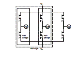 圖1三相橋由三個(gè)半橋組成。兩個(gè)半橋一起工作將創(chuàng)建一個(gè)H橋。