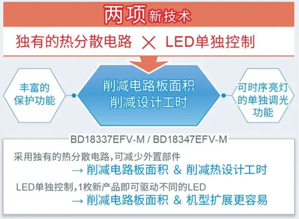 圖5:BD18337EFV-M獨有的兩項新技術有助于大幅削減車載LED燈的占板面積和設計周期(圖源:ROHM)