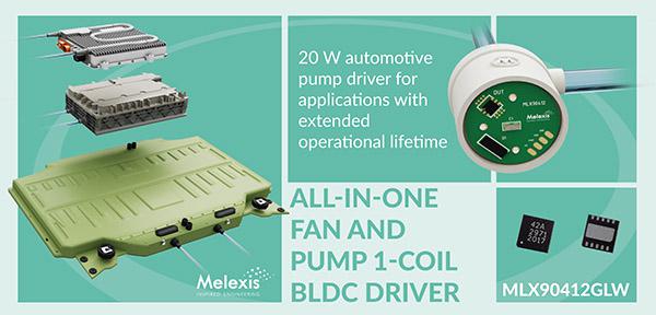 全球微電子工程公司 Melexis 推出集成有驅(qū)動級的單線圈泵/風扇芯片 MLX90412GLW,適用于環(huán)境溫度較高的應用,例如汽車水泵。MLX90412GLW 可在內(nèi)燃機(ICE)應用中驅(qū)動高達 15W 的泵,最高工作環(huán)境溫度高達 135℃。在電動汽車(EV)85℃ 的最高環(huán)境溫度范圍內(nèi),可驅(qū)動高達 20W 的水泵。
