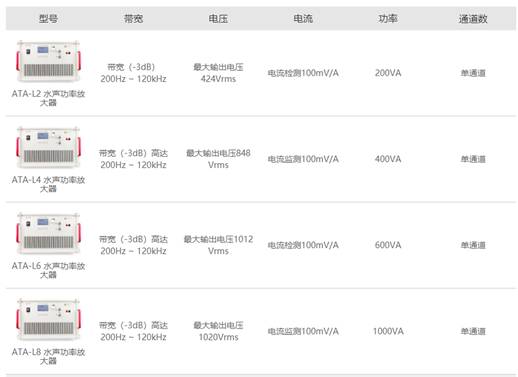 ATA-L系列水聲功率放大器型號參數(shù)指標: