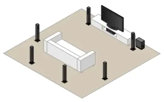 圖3:以較小角度放置更多揚(yáng)聲器,有助于消除可能出現(xiàn)的音頻熱點(diǎn),尤其是在音軌沒(méi)有正確地進(jìn)行混音或處理,或者音頻轉(zhuǎn)換器未能正確處理環(huán)繞聲的情況下。(圖源:Zern Liew/Shutterstock.com)