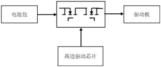 在電動工具中,引入高邊驅動方案,除了避免傳統(tǒng)機械開關的固有缺點,同時具有可控強、導通時間可調整、支持多包并聯(lián)、短路保護、體積小等優(yōu)點。如圖2所示,高邊驅動IC會產生高出電池包12V的電壓,通過控制MOS的Gate電壓,可以控制主回路通斷。