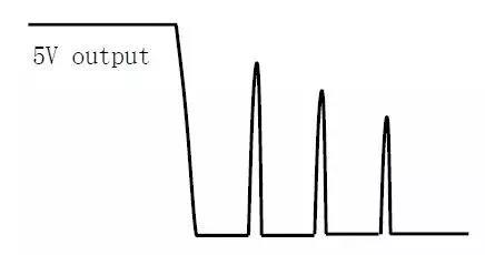 在輸出空載或輕載時(shí),關(guān)閉輸入電壓,輸出(如5V)可能會(huì)出現(xiàn)如下圖所示的電壓反跳的波形。