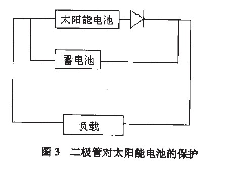 前面所說(shuō)的太陽(yáng)能電池不能直接對(duì)負(fù)載供電,必須把電能存儲(chǔ)在蓄電池中,蓄電池對(duì)負(fù)載供電,但是蓄電池的電壓不能加在太陽(yáng)能電池上,必須保證太陽(yáng)能電池和蓄電池之間的充電是單向的。很簡(jiǎn)單的方法是在太陽(yáng)能電池和蓄電池之間加一個(gè)二極管,如圖3所示。