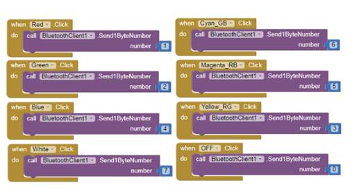用戶界面中的按鈕與軟件命令相關(guān)聯(lián):應(yīng)用程序通過藍(lán)牙發(fā)送的所有命令都是以字節(jié)格式,每一個(gè)bit負(fù)責(zé)特定的功能。