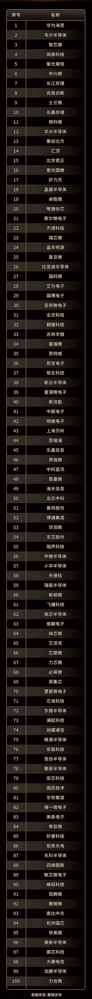 第三屆中國(guó)半導(dǎo)體投資聯(lián)盟年會(huì)暨中國(guó) IC 風(fēng)云榜頒獎(jiǎng)典禮近日在北京舉行。會(huì)上,集微咨詢發(fā)布了“中國(guó)半導(dǎo)體企業(yè) 100 強(qiáng)”榜單。