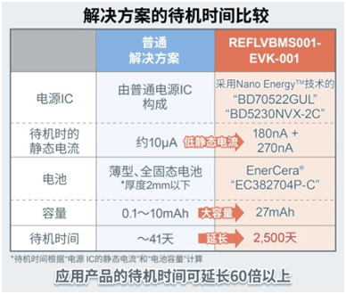 在本解決方案中,搭載超低靜態(tài)電流技術(shù)“Nano Energy™”的電源IC可以更大程度地降低應(yīng)用產(chǎn)品電源部分的功耗,同時(shí),支持各種二次電池的充電控制IC可為各種二次電池提供相匹配的充電。