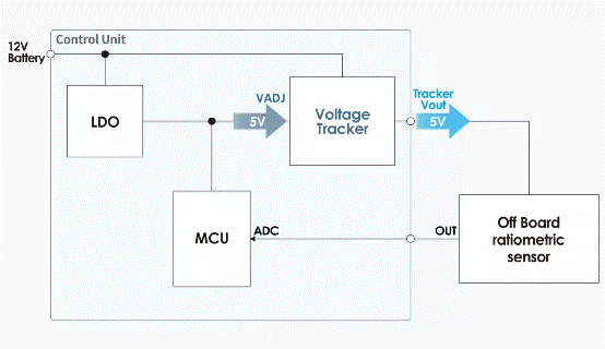 如想安全地為安裝在遠離 ECU(電子控制單元)的分離式傳感器供電并準確讀取信號時,電壓跟蹤器是最好的選擇,原因在于其卓越的電壓跟蹤精度。這一點將會在「3. 電壓跟蹤器特性」進一步講解。