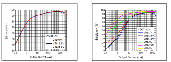 3.  在Vin=3.3V,Vout=9V,Iout=2A時(shí)效率高于90%