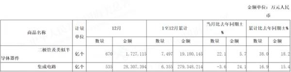 2021 年 1-12 月,我國二極管及類似半導(dǎo)體器件進(jìn)口 7497 億個(gè),同比增長 38%;金額為 1918 億元人民幣,同比增長 18.2%。