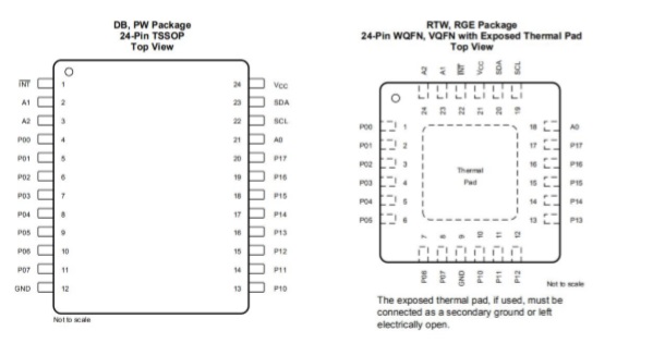 I2C IO 擴(kuò)展,主要有16 路和8路,主流是16路,各家基本兼容。封裝上TSSOP24、QFN24、 SOP24、SSOP24 都有。