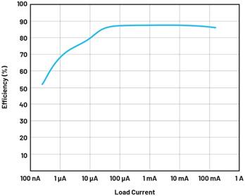 圖3中的效率曲線顯示了輸出電流非常低(如1 µA)時可以達到的效率。這就節(jié)省了大量能量,尤其是在長時間工作和低負載的應(yīng)用中。