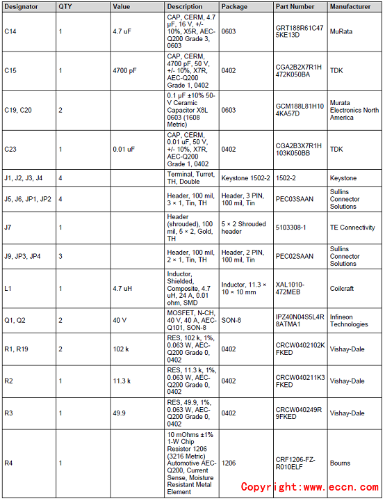 評(píng)估模塊TPS55288EVM-045材料清單: