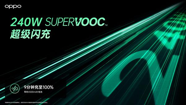 OPPO 推出 240W 的超級(jí)閃充充電效率再創(chuàng)新高:最高可支持 24V / 10A 充電,9 分鐘左右即可將等效 4500mAh 電池能量的手機(jī)最高充至 100%。