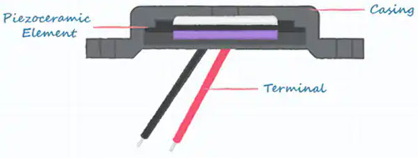 圖 3:標(biāo)準(zhǔn)壓電蜂鳴器結(jié)構(gòu)(圖片來(lái)源:CUI Devices)