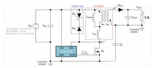 電路可鉗位與漏電感相關(guān)的電壓尖峰