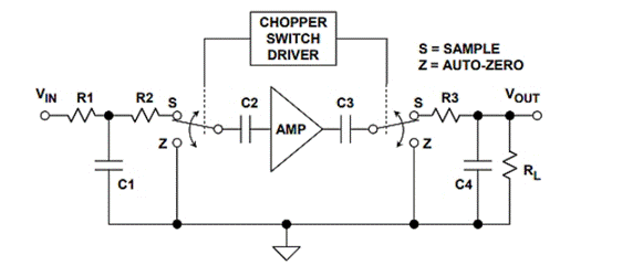根據(jù)凌力爾特公司(Linear Technology)的吉姆·威廉姆斯(Jim Williams)所說,斬波穩(wěn)定的方法是由EA戈德堡(EA Goldberg)在1948年開發(fā)的,它使用放大器的輸入來對(duì)交流載波進(jìn)行幅度調(diào)制。該載波被放大并同步解調(diào)回DC,并提供放大器的輸出。由于直流輸入被轉(zhuǎn)換為交流信號(hào)并放大為交流信號(hào),因此放大器的直流項(xiàng)不會(huì)影響整體漂移。因此,斬波穩(wěn)定型放大器與傳統(tǒng)差分類型相比,可實(shí)現(xiàn)更低的時(shí)間和溫度漂移。