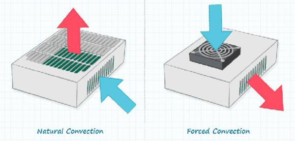 圖 1:自然對(duì)流與強(qiáng)制空氣對(duì)流冷卻(圖片來源:CUI Devices)