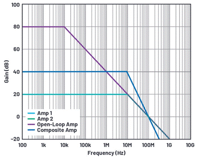 圖2. 通過復(fù)合放大器擴(kuò)展帶寬。