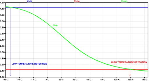 這種熱敏電阻還具有較高的熱循環(huán)耐受能力,高溫下阻值漂移較低。NTC熱敏電阻可放在TNPW / TNPU系列固定電阻網(wǎng)絡(luò)中—TNPW/TNPU系列電阻具有超精密公差,電阻熱系數(shù)低至± 0.1 %,± 25 ppm/℃,或者放在可支持± 0.05 %相對(duì)公差和0.1%絕對(duì)公差的ACAS網(wǎng)絡(luò)電阻中(圖4)?刂菩酒瑢(duì)NTC熱敏電阻 (Vntc) 產(chǎn)生的電壓進(jìn)行采樣,并檢測(cè)高低閾值。