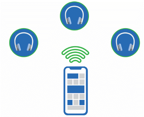 例如,機(jī)場(chǎng)當(dāng)局可以設(shè)置具有普通公告廣播音頻流的音頻源設(shè)備,范圍內(nèi)的音頻接收設(shè)備(乘客耳塞)就可以同時(shí)接收相同的音頻流。