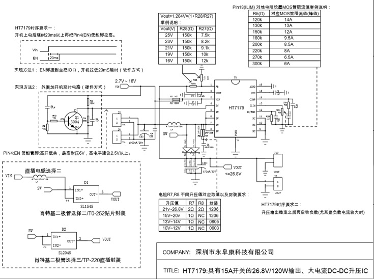 HT7179 具有15A開關(guān)的26.8V/120W輸出、大電流DC-DC升壓IC應(yīng)用設(shè)計參考