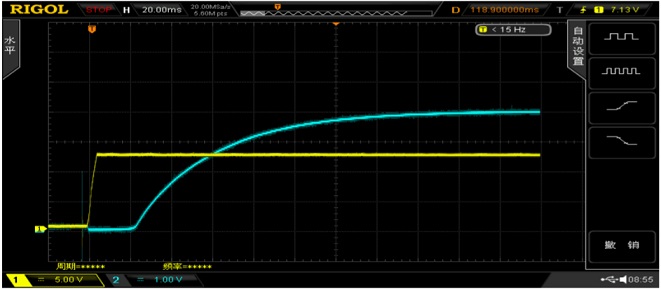 HT7179 EN管腳外加開機延時電路波形 藍色:EN 黃色:Vin