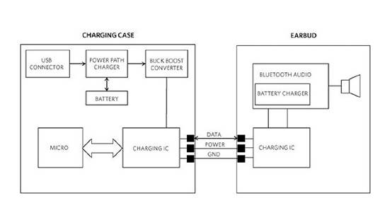 傳統(tǒng)的TWS充電過程中,需要使用3個或更多的引腳,其中兩個引腳用于充電,其他引腳用來在充電盒和耳機之間建立通信(或數(shù)據(jù))通道,一方面跟蹤耳機電池的充電狀態(tài)以便對充電過程進行調(diào)控,另一方面實現(xiàn)設(shè)備固件升級和/或用于工廠調(diào)試,在一些方案中還使用專用的(pogo)引腳檢測耳機是否被放入充電盒。但更多的引腳,也就意味著電路布線的復(fù)雜性會增加,而且會在可靠性上引入額外的風(fēng)險。