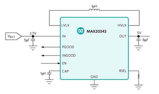 上述的MAX20340與MAX20343配合使用,就構(gòu)成了一個以小型化、高效率為特點的TWS充電倉解決方案:MAX20340間歇地查詢耳機電池電壓,并將該信息提供給充電倉中的微控制器;微控制器調(diào)節(jié)MAX20343的輸出電壓,使其與耳機電池電壓加上線性充電器所需的附加裕量相匹配,這樣能夠最大程度降低充電倉中電池的能源浪費,也可避免耳機充電時溫度過熱,以實現(xiàn)更快的充電速率。