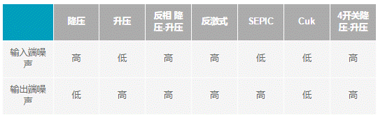 表1. 常用開關(guān)穩(wěn)壓器拓撲及其輸入和輸出端噪聲特性概覽