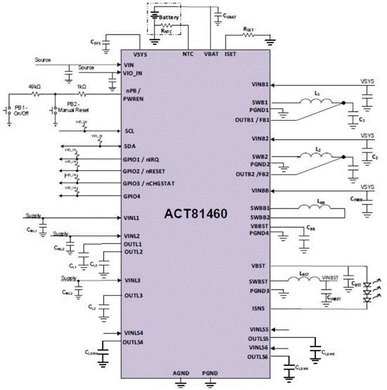 圖 2:Qorvo ACT81460 是一款集成度高的低功耗多軌 PMIC,無需任何外部有源元件即可工作。