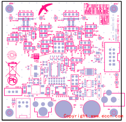 圖8. 評估板EVALSSM6515Z PCB設(shè)計圖:頂層裝配
